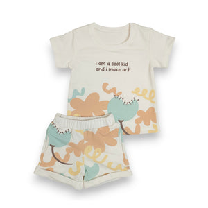 CONJUNTO INFANTIL EN TELA BURDA, SUAVE Y CÓMODA. INCLUYE CAMISETA DE MANGA CORTA CON ESTAMPADO Y SHORT CON PRETINA ELÁSTICA PARA MEJOR AJUSTE Y LIBERTAD DE MOVIMIENTO. IDEAL PARA EL USO DIARIO.
