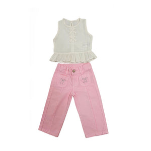 62013 CONJUNTO NIÑA BEBÉ - OVEROL DENIM CORTO Y CAMISETA VOLANTES