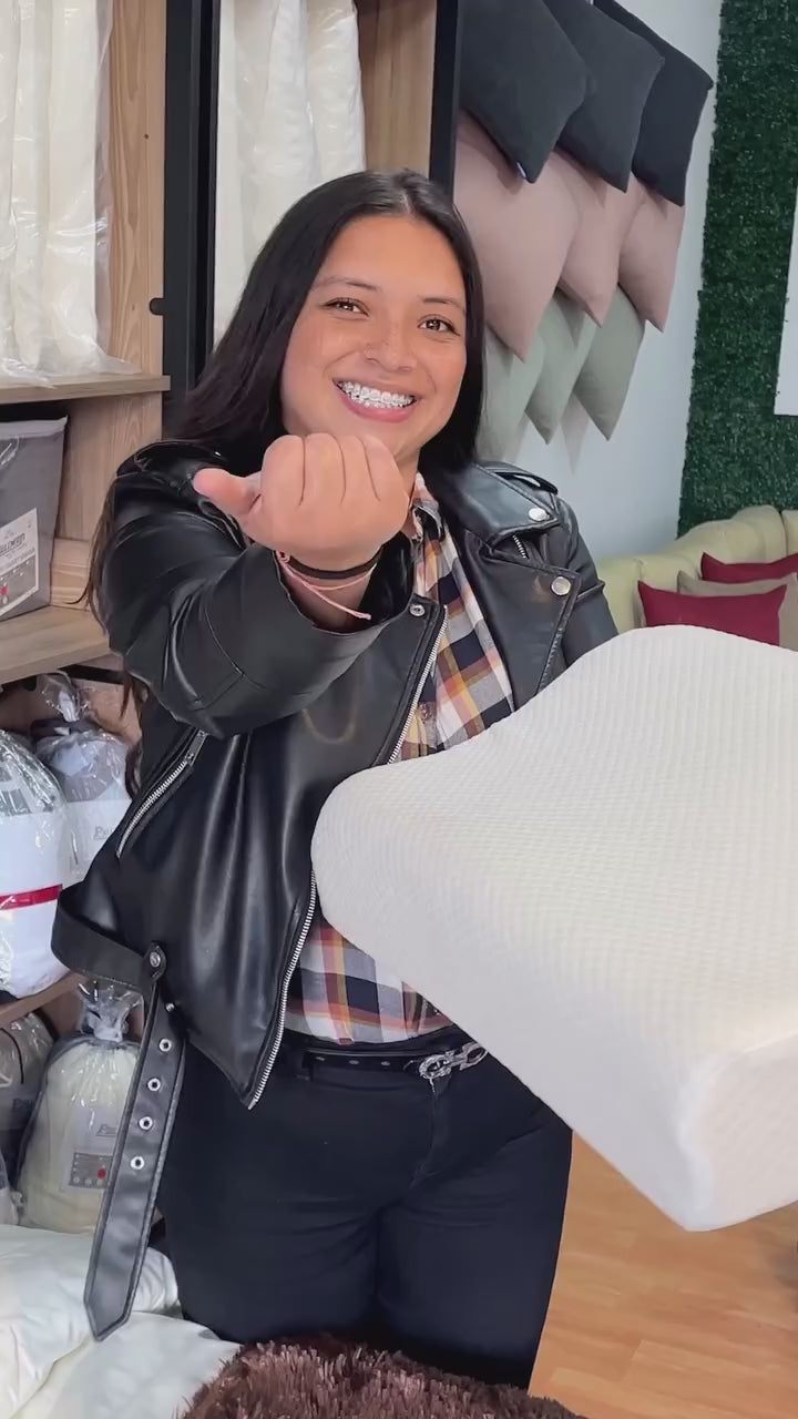 Almohada de alta firmeza, recomendada para personas que duermen boca arriba o de lado. Brinda soporte ergonómico y mejora la alineación del cuello y la cabeza.