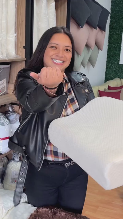 Diseñada con bordes biselados que facilitan la colocación de los brazos debajo de la almohada, ideal para quienes duermen de lado, ya que reduce la presión sobre el brazo y el hombro. Su estructura interna cuenta con cámaras de aire que favorecen la ventilación, reducen la acumulación de calor y permiten mantener una temperatura neutral, incluso en climas cálidos.