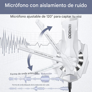 LOS AURICULARES GAMER G9000 PRO EN COLOR BLANCO HAN SIDO DISEÑADOS PARA BRINDAR UNA EXPERIENCIA DE JUEGO INMERSIVA Y CÓMODA, IDEALES PARA JUGADORES QUE BUSCAN ALTO RENDIMIENTO Y ESTILO. SU DISEÑO ERGONÓMICO, CON DIADEMA AJUSTABLE Y ALMOHADILLAS ACOLCHADAS, PERMITE LARGAS SESIONES DE USO SIN INCOMODIDAD, MIENTRAS QUE LA ILUMINACIÓN LED BLANCA AÑADE UN ASPECTO MODERNO Y ATRACTIVO A CUALQUIER SETUP GAMER.