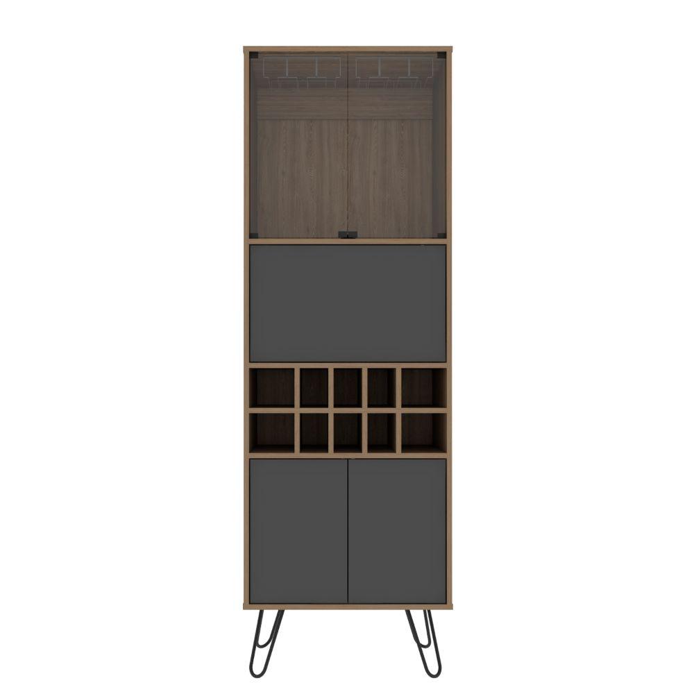 bar alto lara, miel y plata oscuro, con amplio espacio porta copas y patas de acero