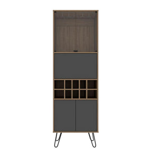 BAR ALTO LARA, MIEL Y PLATA OSCURO, CON AMPLIO ESPACIO PORTA COPAS Y PATAS DE ACERO