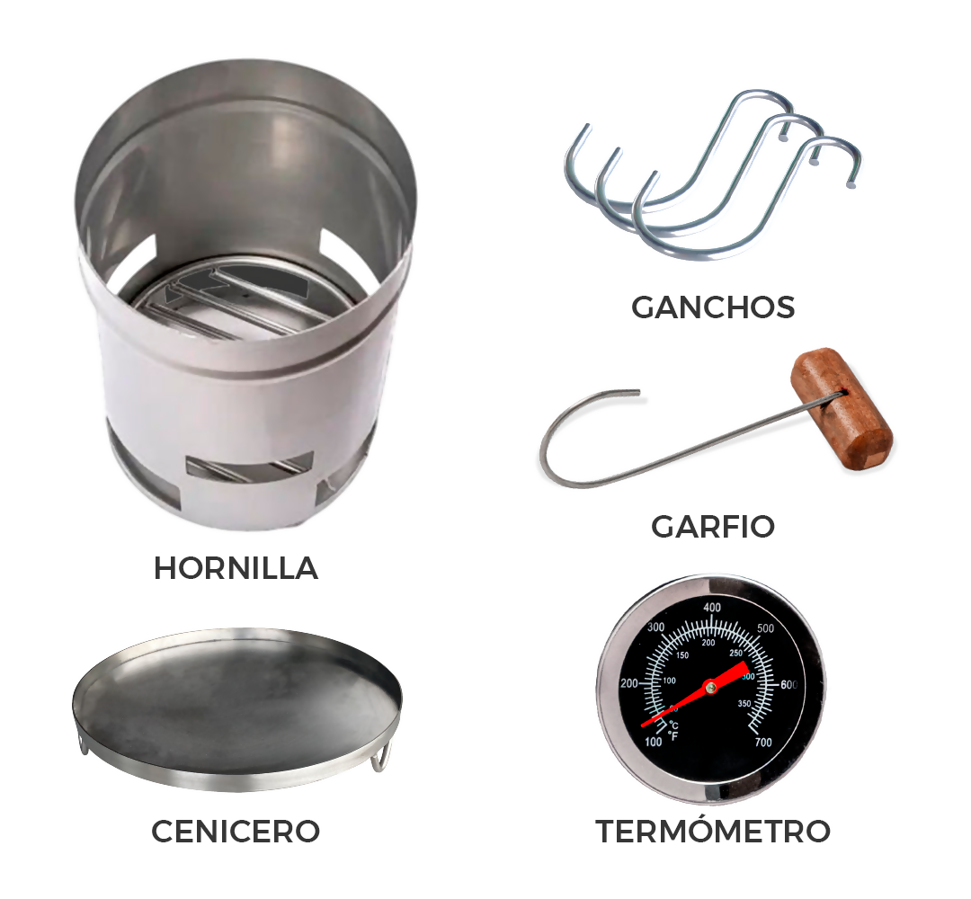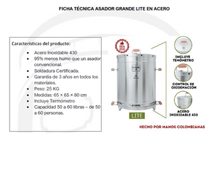 Está diseñado para asados con carbón, ideal para grupos grandes o eventos.