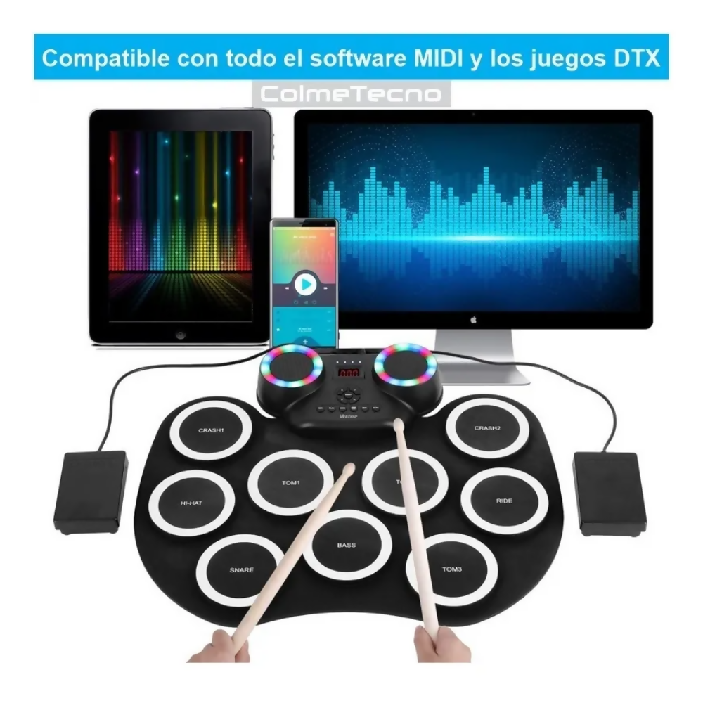 batería electrónica de mesa digital drum led bluetooth