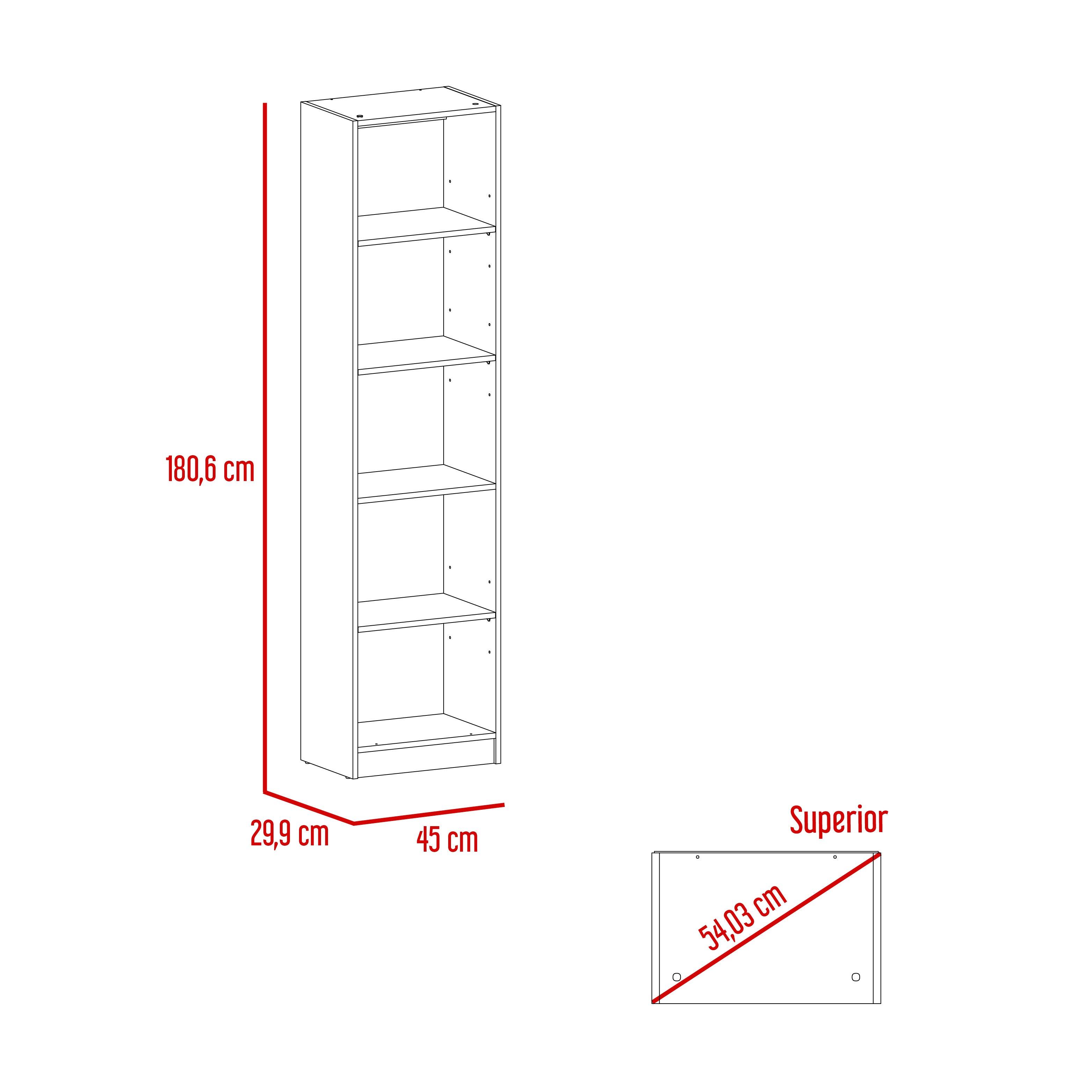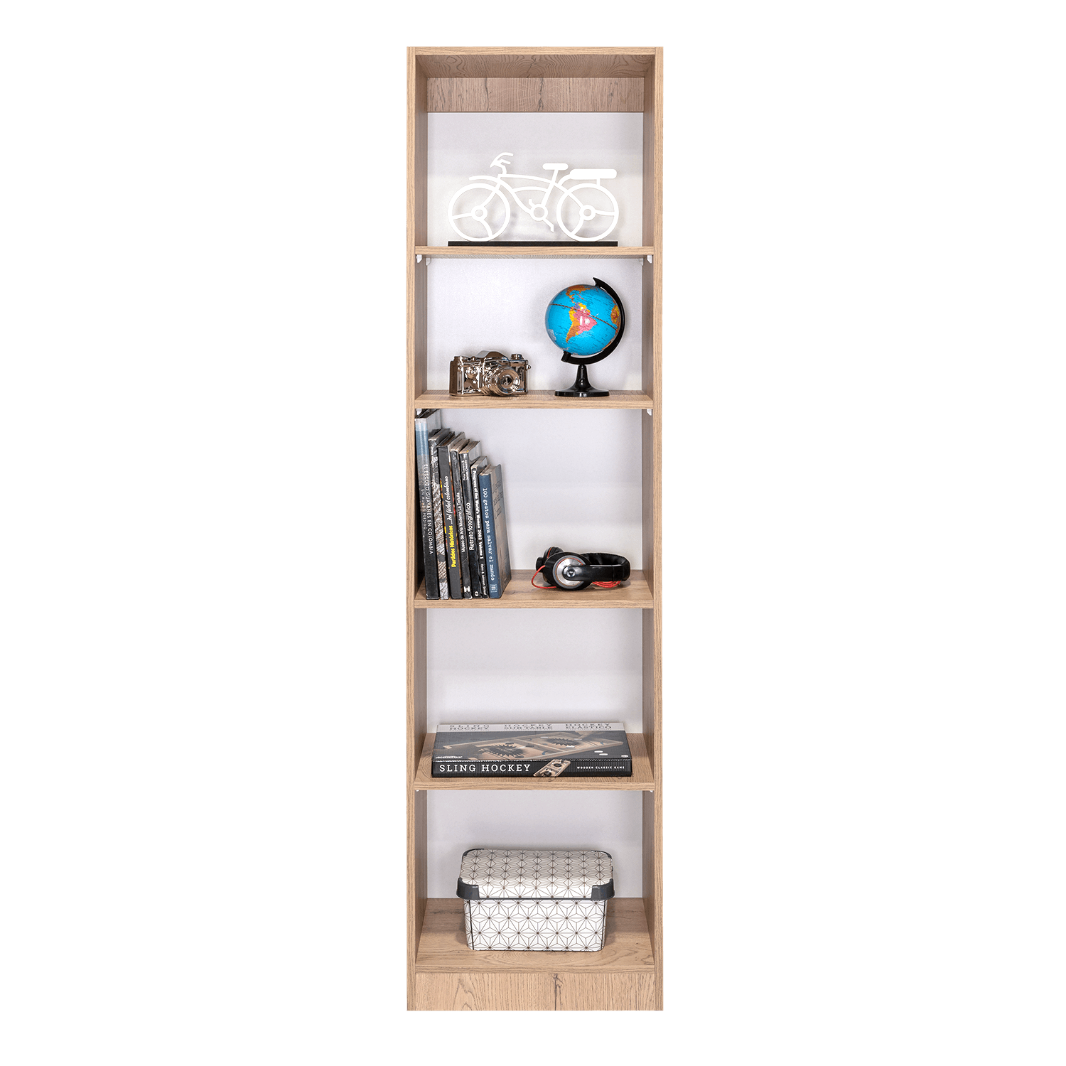 Biblioteca, con cinco entrepaños para ubicar libros y elementos decorativos.