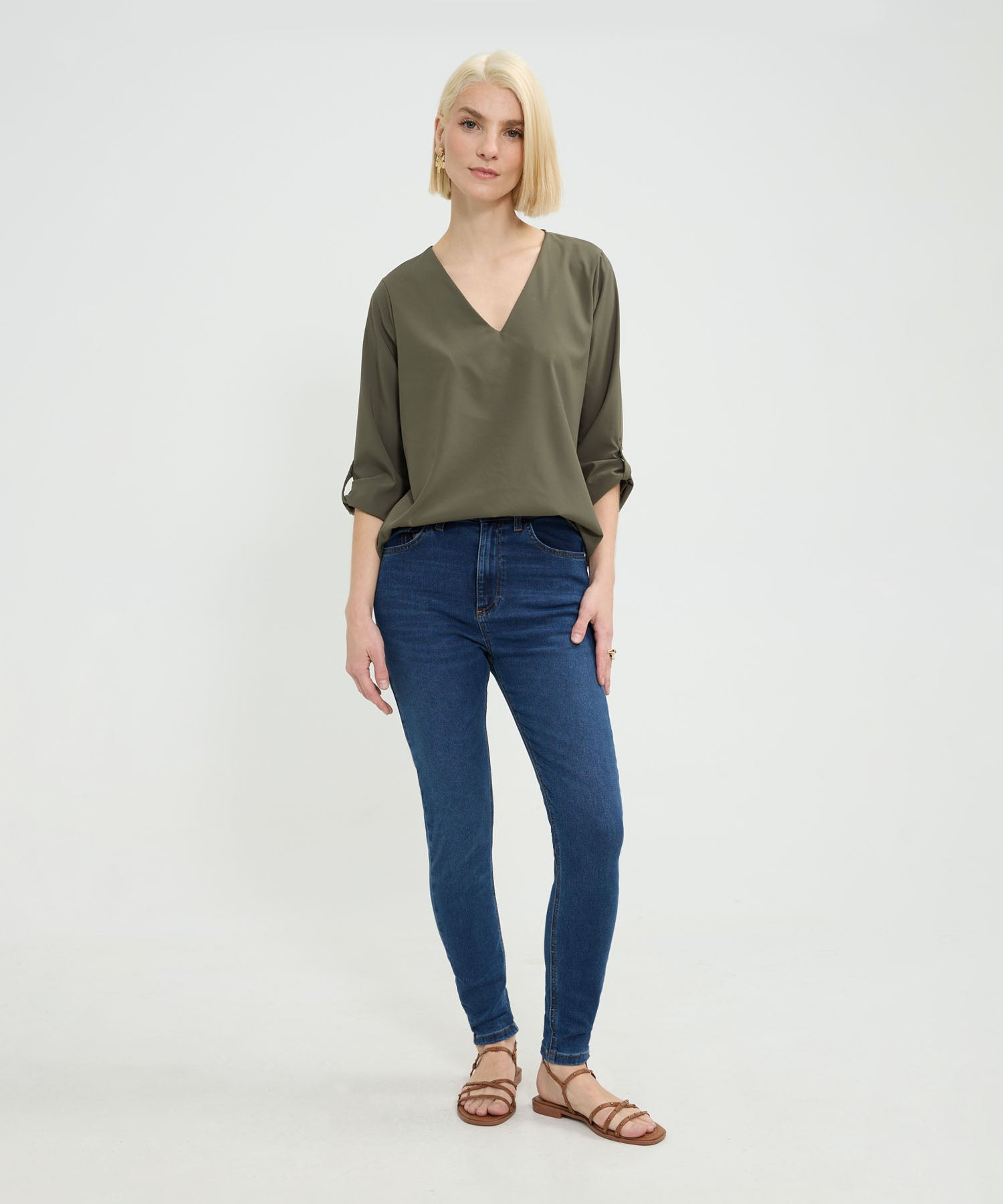 BLUSA M 3/4 UNICOLOR CON ESCOTE EN V 30122907