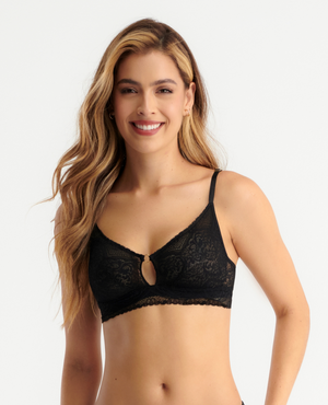 DESCUBRE NUESTRO BRALETTE DE SILUETA TRIANGULAR, CON UN ENCANTADOR ESCOTE EN EL CENTRO Y UN DETALLE DE ARGOLLA. SU ELÁSTICO ANCHO EN LA BASE ASEGURA QUE PERMANEZCA EN SU LUGAR, OFRECIENDO UNA MODELACIÓN IDEAL. LAS CARGADERAS FIJAS SON GRADUABLES PARA UN AJUSTE PERSONALIZADO. CONFECCIONADO EN DELICADO ENCAJE. SIÉNTETE CÓMODA Y ELEGANTE EN CADA OCASIÓN.