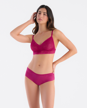 BRALETTE DE ENCAJE, SILUETA TRIANGULAR, CON ELÁSTICO INTERNO EN LA BASE QUE PERMITE QUE PERMANEZCA EN SU LUGAR Y TENGA MEJOR MODELACIÓN. ABROCHADURA DE 4 AJUSTES Y CARGADERAS GRADUABLES QUE PUEDES USAR DE MANERA TRADICIONAL O CRUZADAS. ¡SIÉNTETE CÓMODA Y ROMÁNTICA EN TU DÍA A DÍA! POLIAMIDA / ELASTANO.