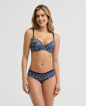 BRASIER DE DOBLE REALCE QUE CENTRA EL BUSTO DÁNDOTE UN MAYOR VOLUMEN CON UN LOOK NATURAL. ES ULTRALIVIANO, SUAVE AL CONTACTO Y NO SE MARCA EN LA ROPA. LAS COPAS TIENEN UNA ESPUMA QUE NO SE DEFORMA, SE ADAPTA A LA FORMA DEL CUERPO Y TIENE LA CAPACIDAD DE RECUPERAR SU FORMA ORIGINAL. SU ESPALDA DE ANCHO MEDIO TE BRINDARÁ COMODIDAD Y SOPORTE. SUS CARGADERAS SON AJUSTABLES PARA USARLO DE MANERA TRADICIONAL, CRUZADAS O AL CUELLO. SE ENCUENTRA EN DOS NUEVOS ESTAMPADOS.