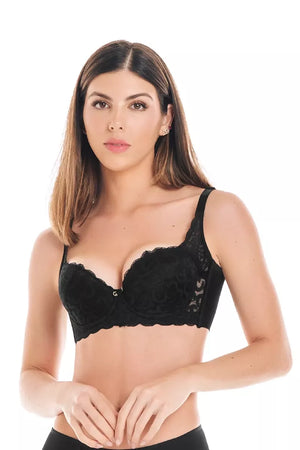 Brasier Vanessa cubrimiento medio en encaje que deslumbra con elegancia. Las copas de realce natural realzan tu belleza de manera sutil. Los arcos y laterales con varilla ofrecen seguridad y ajuste al busto, brindando la forma perfecta. Además, el refuerzo en sisa mejora el aspecto de los rollitos en el interior del brazo. Las cargaderas integradas a la copa aseguran la estabilidad del busto, proporcionando confianza a lo largo del día.