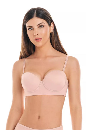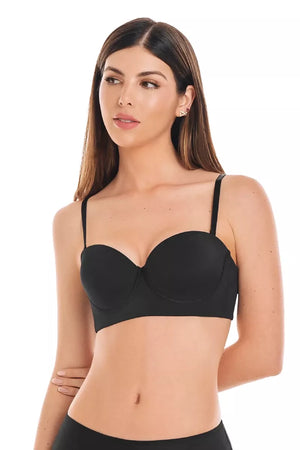 Brasier Vanessa strapless. Su diseño con aro garantiza un realce natural, resaltando tus curvas de manera sutil. La base amplia ofrece estabilidad y comodidad durante todo el día. El contorno recubierto en powernet proporciona un soporte adicional, asegurando un ajuste perfecto en el busto. Además, las cargaderas versátiles te permiten llevarlo de la forma que prefieras, ya sea convencional o cruzadas. Descubre la versatilidad y el estilo único de nuestro brasier strapless, una elección perfecta para cualquier ocasión.