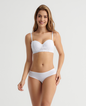 DESCUBRE NUESTRA BRASILERA SEMIDESCADERADA, DISEÑADA CON UN ELEGANTE DETALLE DECORATIVO EN LA PIERNA Y UN ELÁSTICO DELGADO EN LA CINTURA PARA UN AJUSTE PERFECTO. SU PARTE POSTERIOR, CONFECCIONADA EN DELICADO ENCAJE, RESALTA TU FEMINIDAD, MIENTRAS QUE EL REFUERZO INTERNO EN ALGODÓN ASEGURA COMODIDAD TODO EL DÍA. SIÉNTETE HERMOSA Y SEGURA CON CADA USO.POLIAMIDA-ELASTANO