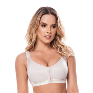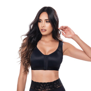 Brasier de alta compresión con copa prehormada y corrector de postura, ideal para uso postquirúrgico y diario. Ofrece excelente soporte, alivia molestias y favorece la recuperación tras cirugía. Cuenta con dos niveles de broches para ajuste personalizado. Brinda comodidad y estabilidad durante el día.