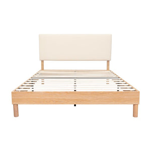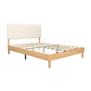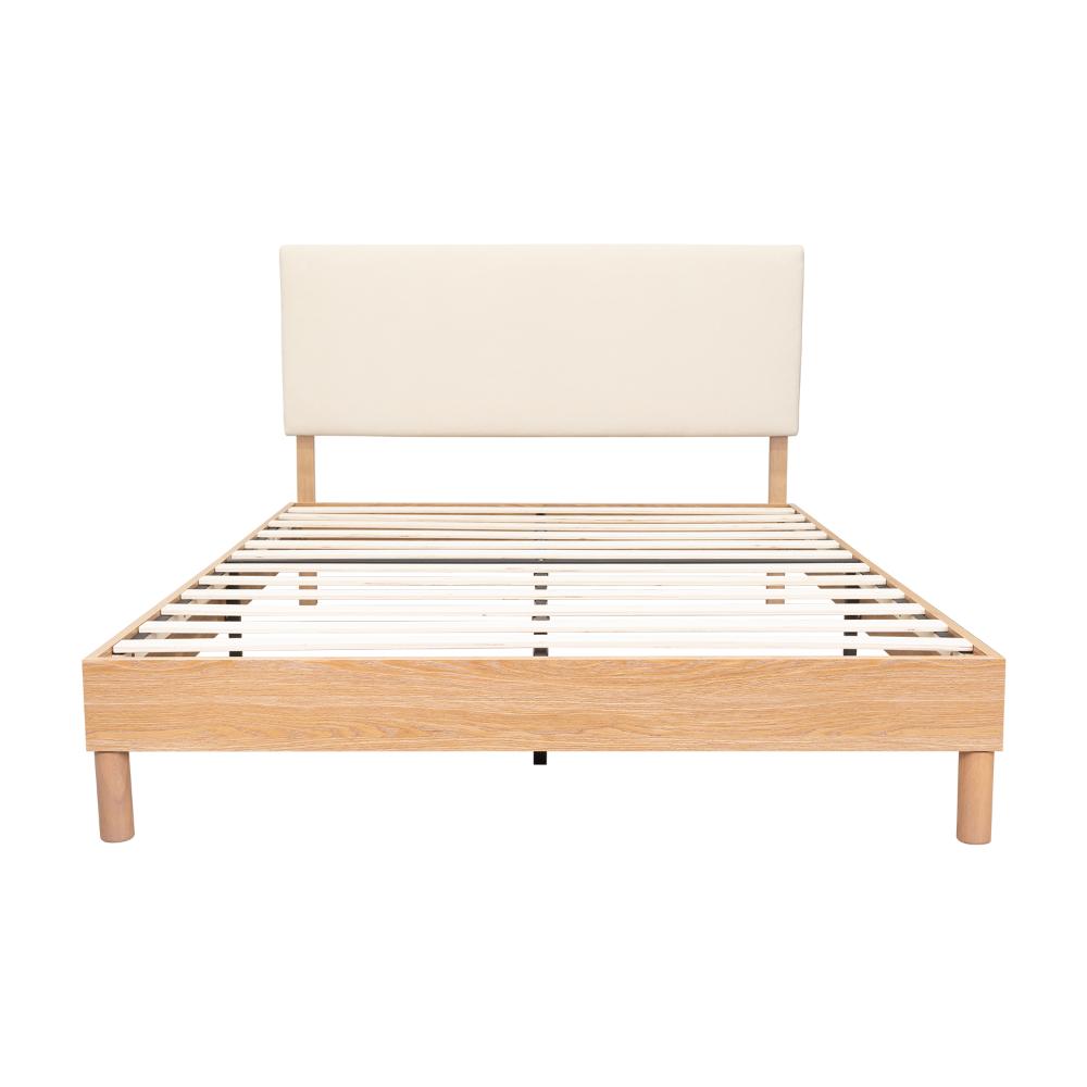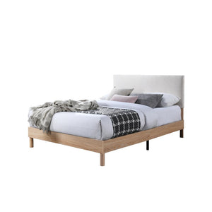 CAMA DOBLE SONIA, BEIGE, CON RESPALDO TAPIZADO