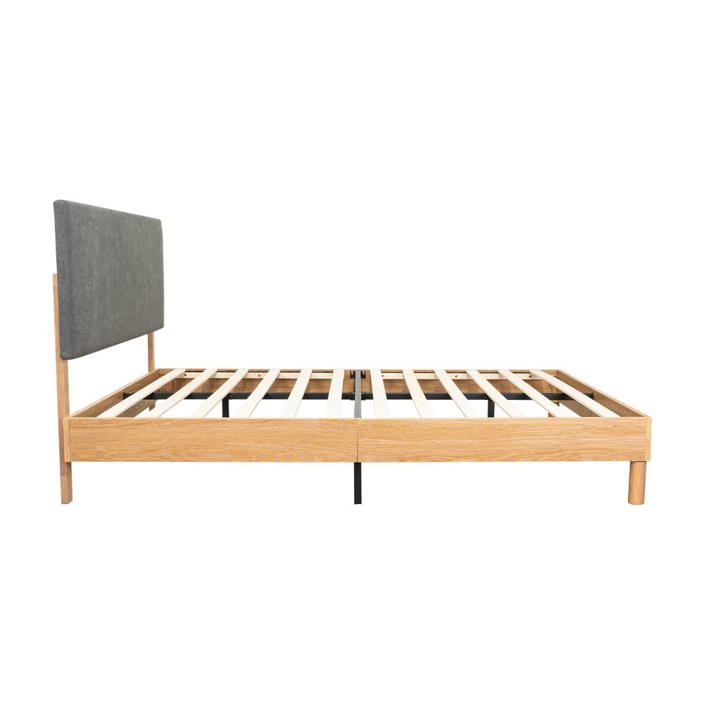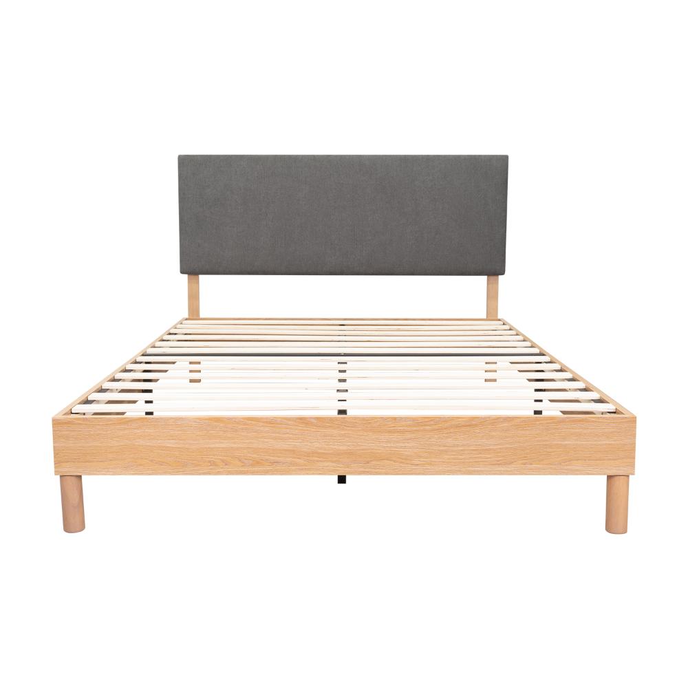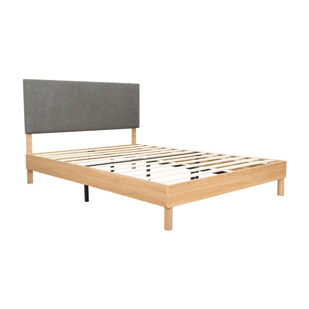 CAMA DOBLE SONIA, GRIS OSCURO, CON RESPALDO TAPIZADO
