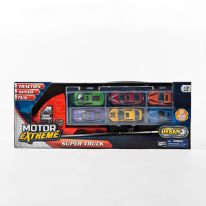 - Caracteristicas adicionales: SET DE CAMION CON AUTOS X 6 CONTIENE PARTES PEQUEÑAS NO APTAS PARA MENORES DE 3 AÑOS FRICCION, VELOCIDAD Y DIVERSION