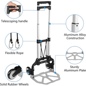 CARRETILLA ALUMINIO PLEGABLE 3 RUEDAS 80 KG PORTÁTIL GOMAS DE SUJECIÓN LIGERA Y RESISTENTE