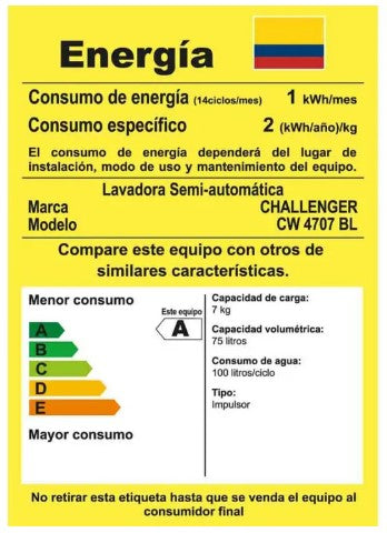 CHALLENGER LAVADORA SEMI AUTOMÁTICA CARGA SUPERIOR DE 7 KG - CW 4707