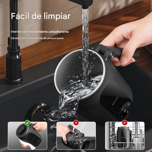CON CAPACIDAD PARA ESPUMAR HASTA 250 ML EN CALIENTE Y GENERAR ESPUMA DENSA EN TAN SOLO 90 SEGUNDOS, ESTE DISPOSITIVO PERMITE PREPARAR CAPPUCCINOS, LATTES, MACCHIATOS O CHOCOLATES CALIENTES CON UNA TEXTURA UNIFORME Y CREMOSA. SU SISTEMA DE APAGADO AUTOMÁTICO INTELIGENTE GARANTIZA SEGURIDAD Y TEMPERATURA PRECISA EN CADA USO, MIENTRAS QUE SU FUNCIONAMIENTO SILENCIOSO Y SU RECUBRIMIENTO INTERIOR DE FÁCIL LIMPIEZA LO CONVIERTEN EN UN ALIADO INDISPENSABLE PARA EL USO DIARIO.