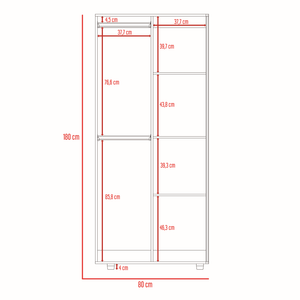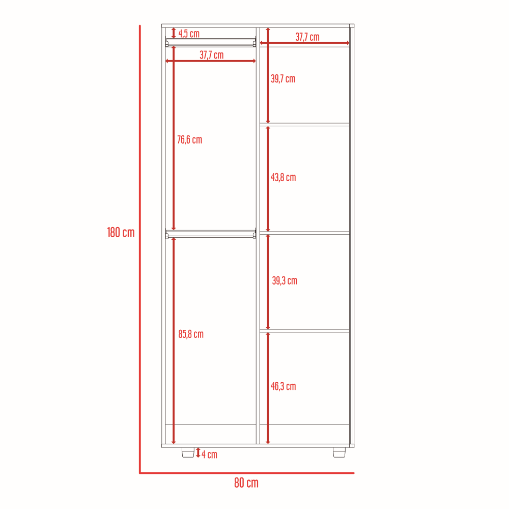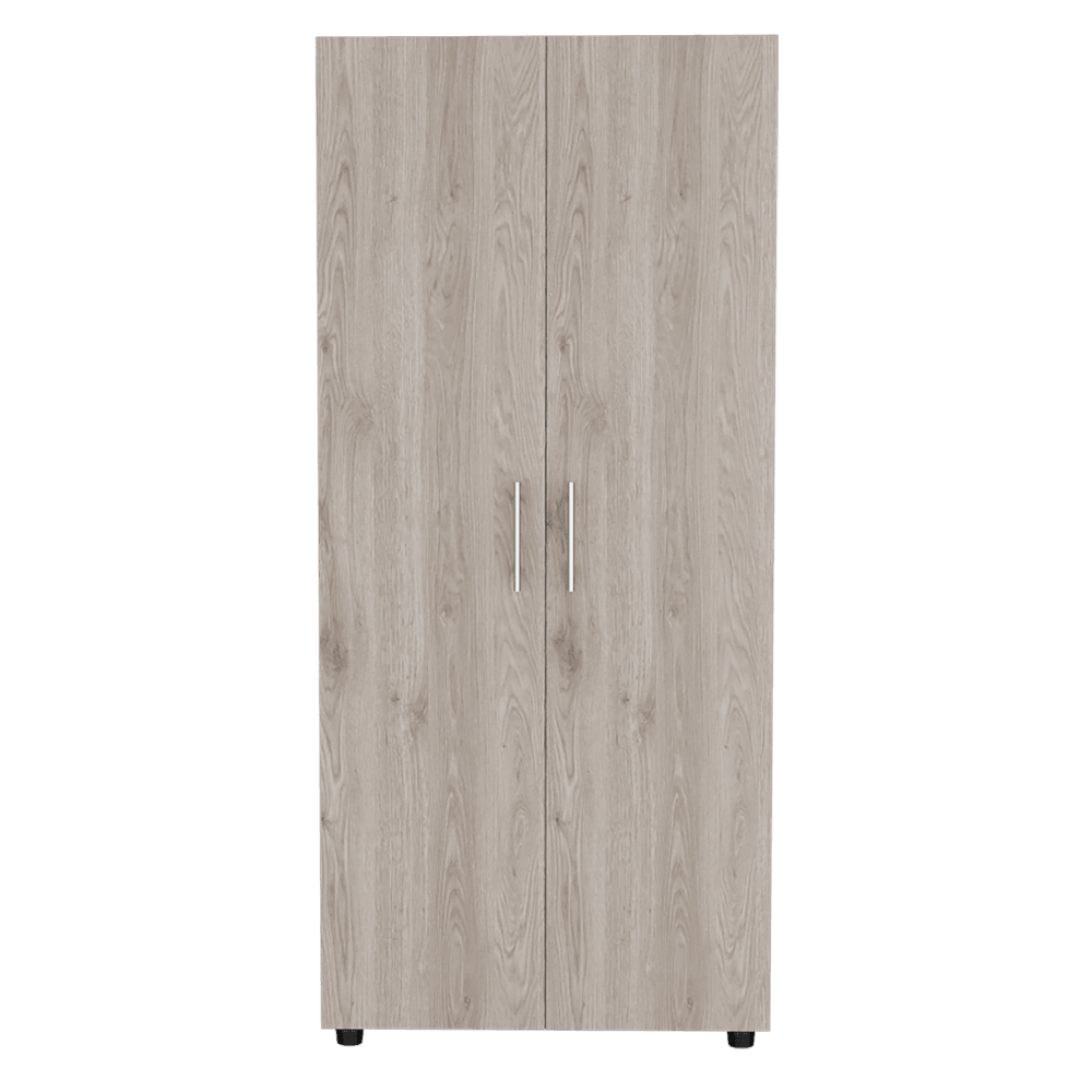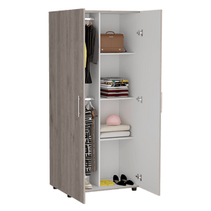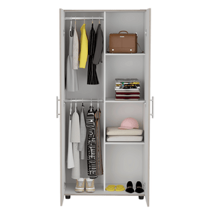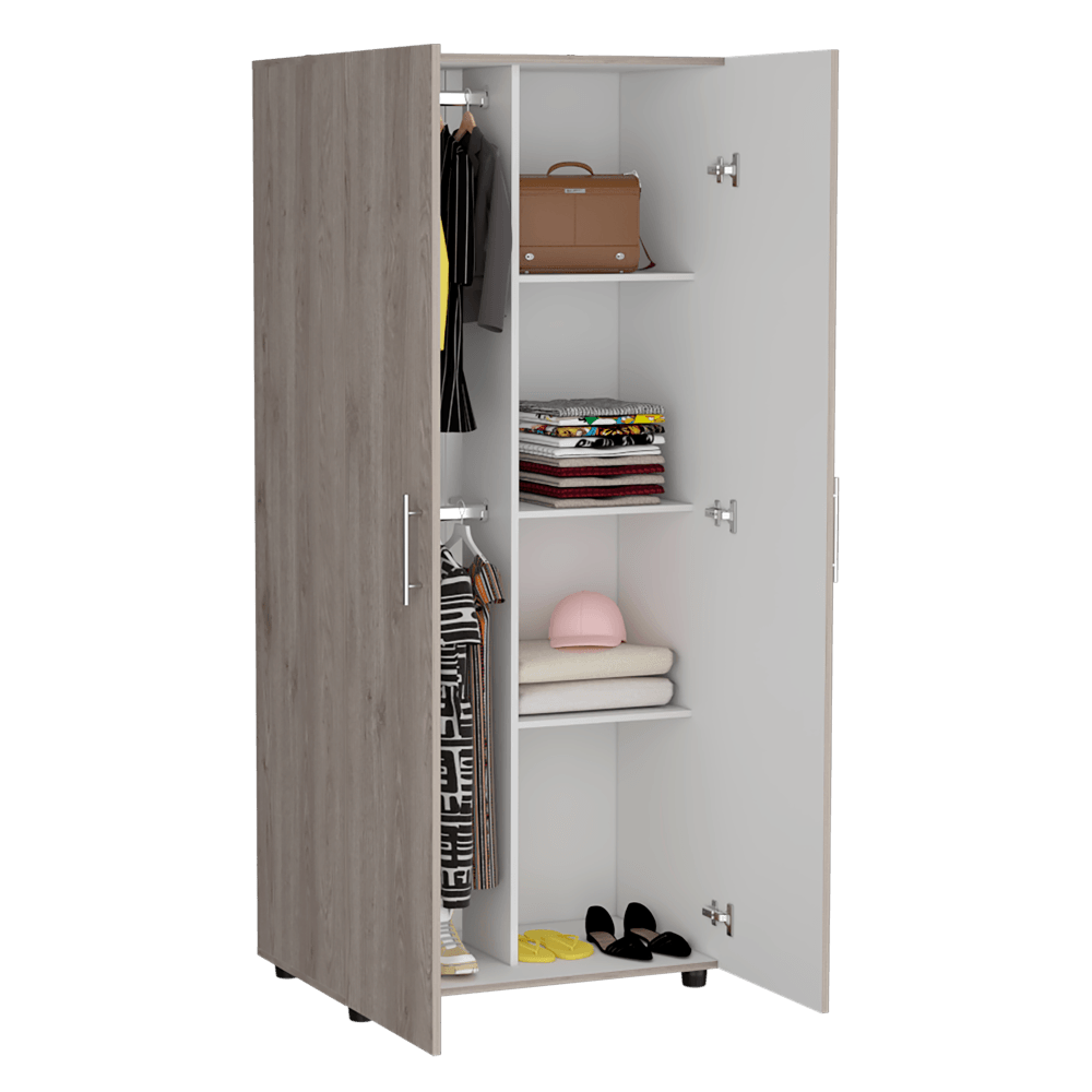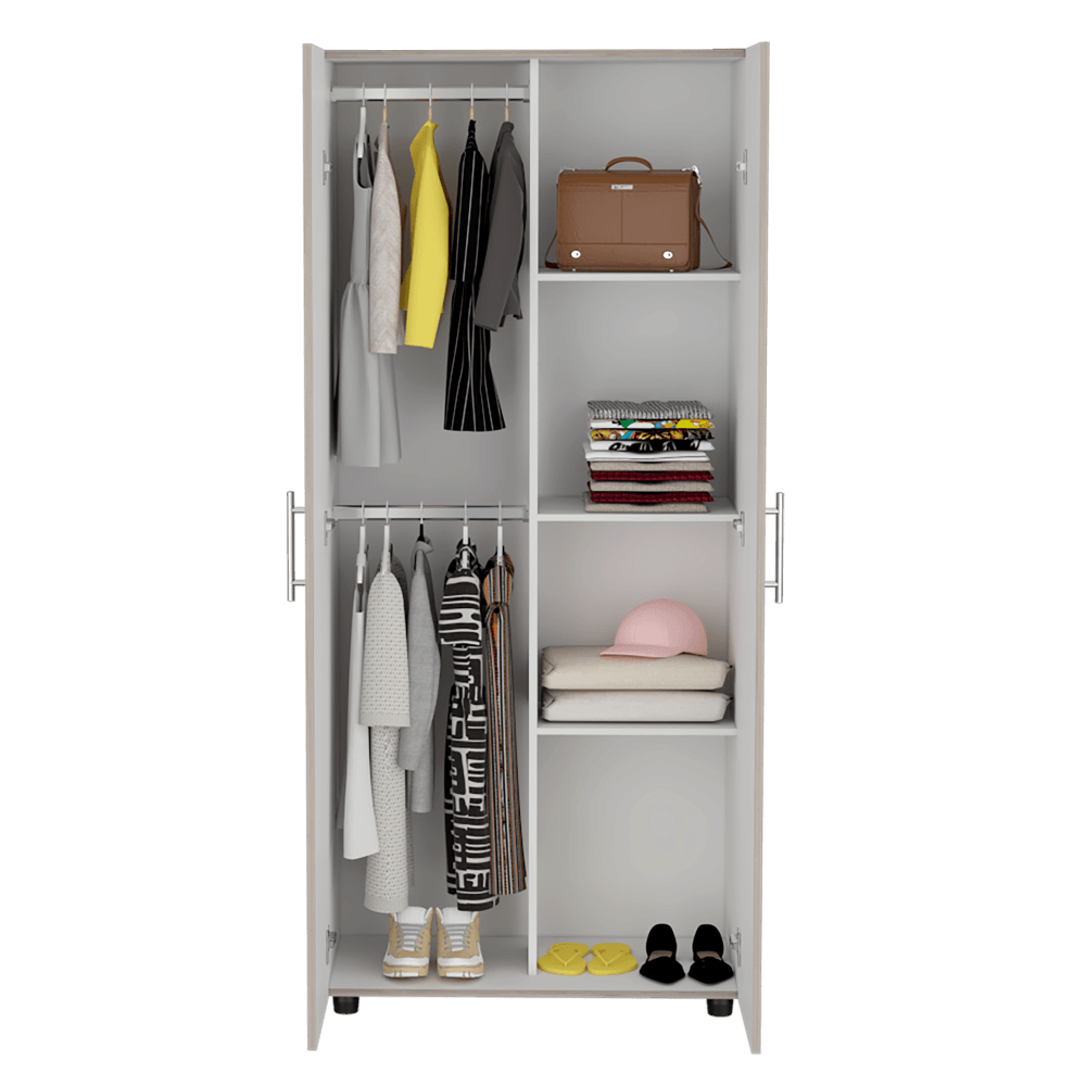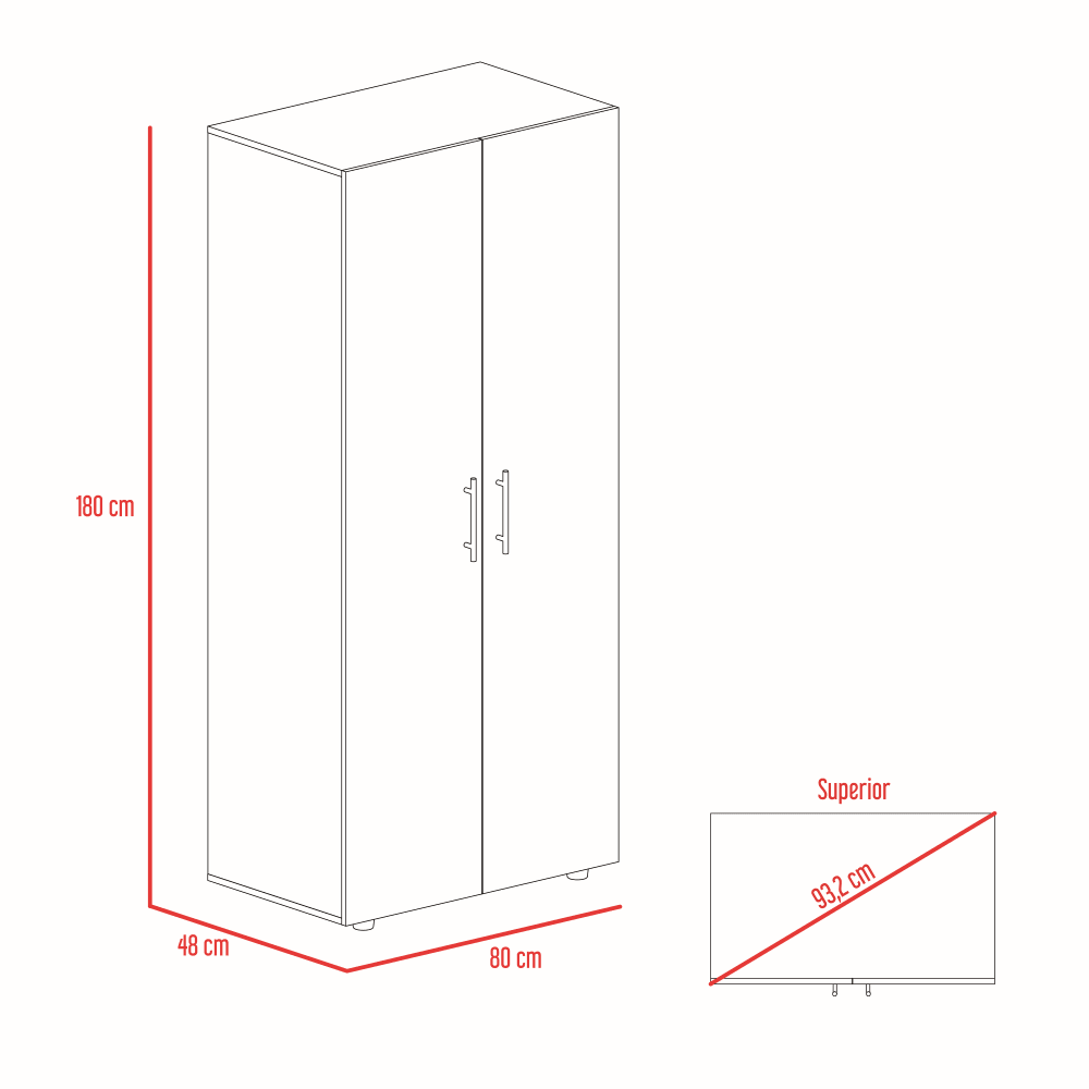 Closet, con 2 puertas abatibles, 2 tubos para colgar prendas, y entrepaños para organizar.
