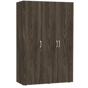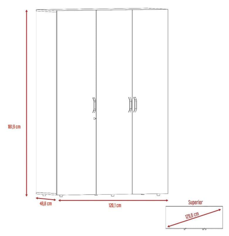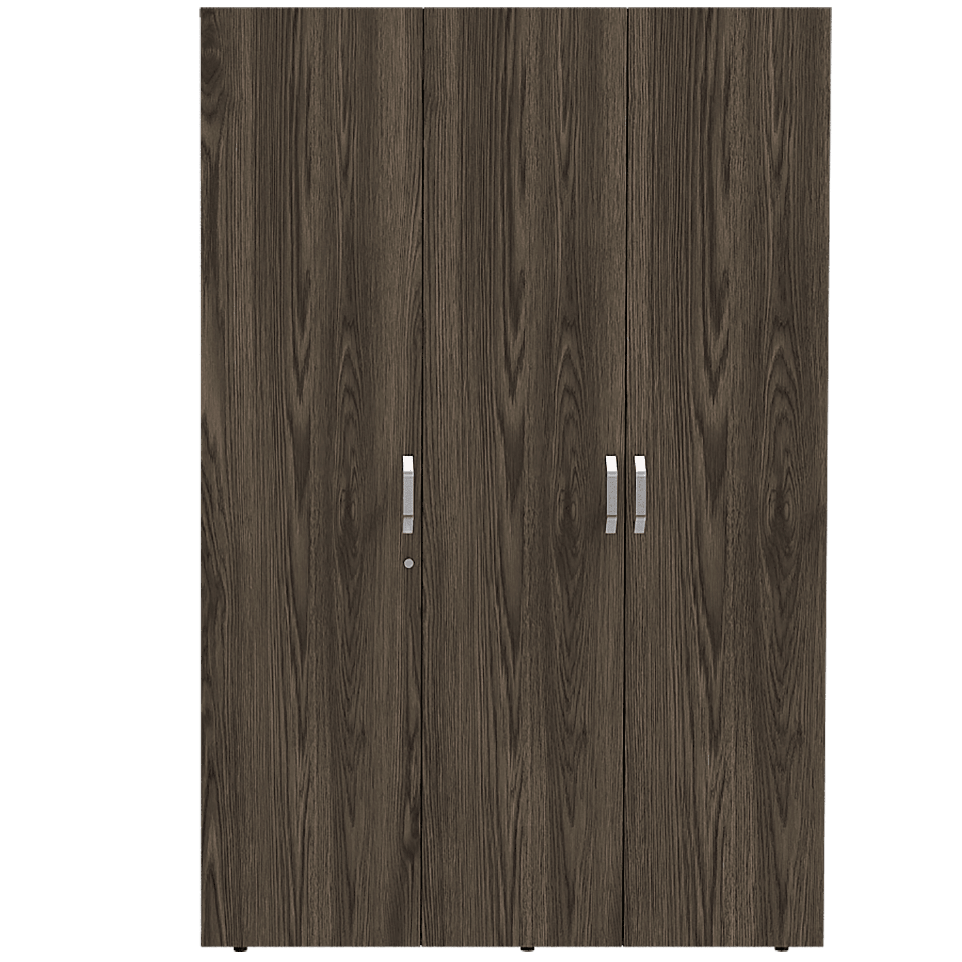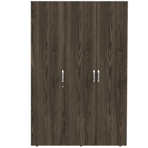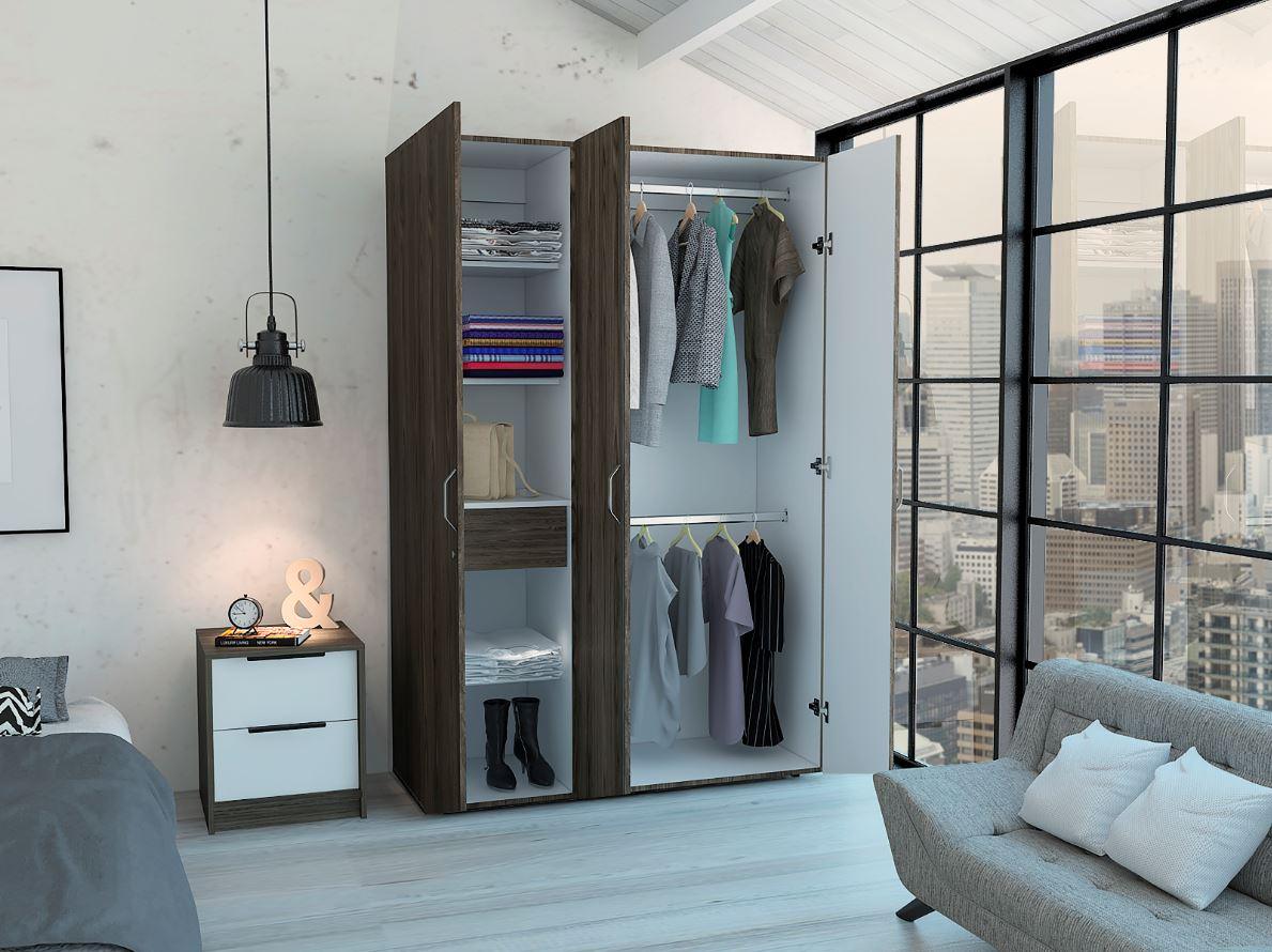 CLOSET ROKO, CHOCOLATE Y BLANCO, CON TRES PUERTAS ABATIBLES CON CERRADURA Y VARIEDAD DE ENTREPAÑOS
