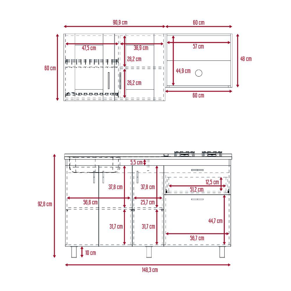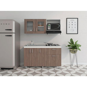 cocina integral adiff, castaño y blanco, incluye mesón izquierdo hc