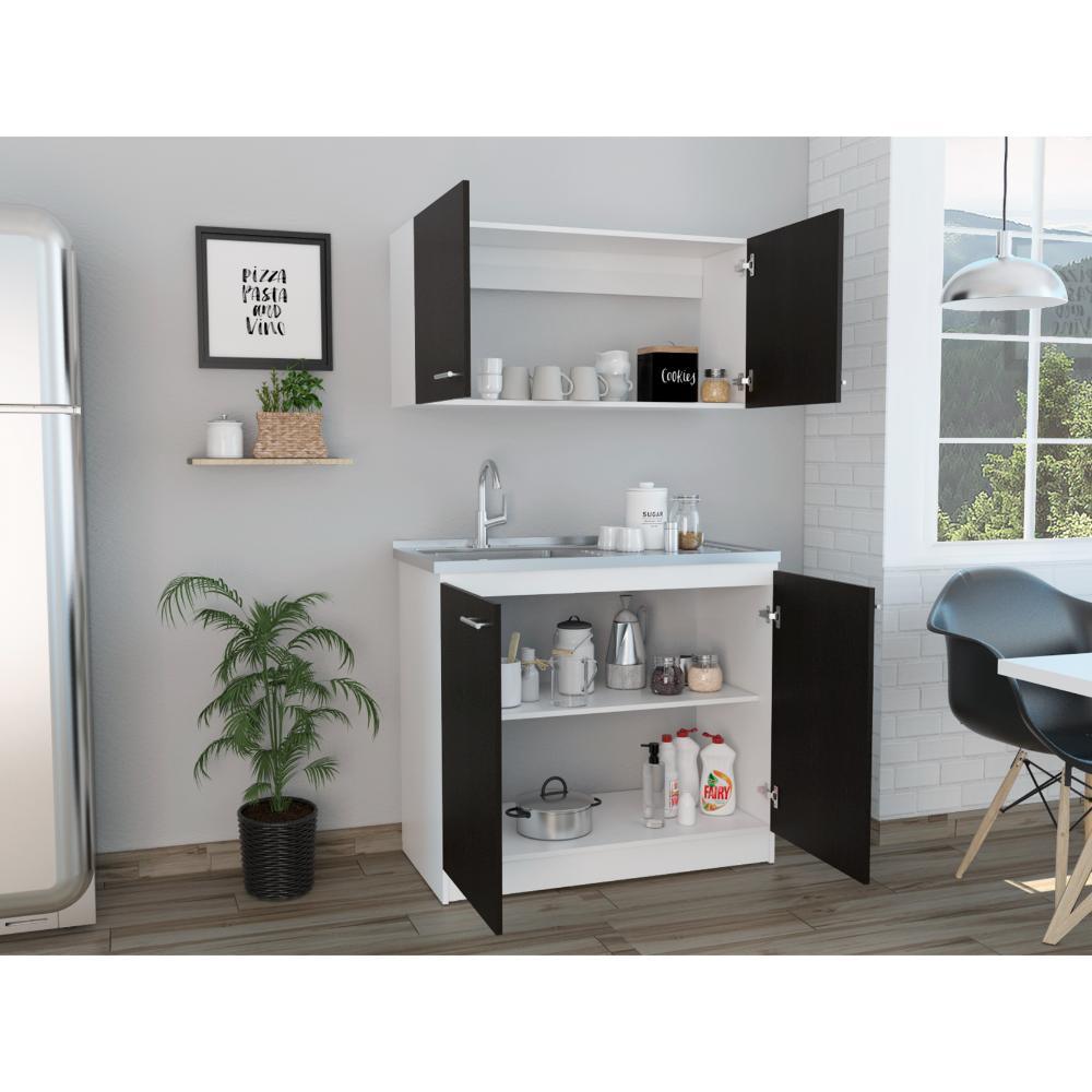 Elaborado en Madera aglomerada MDP, recubierta con láminas melamínicas de excelente calidad, en color Blanco y Wengue