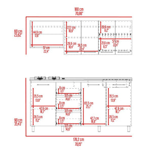 Cocina Integral, Con patas del mismo color de las manijas, Riel sencillo, incluye , locero, portavasos y MESON 1,80 ECONOMICO NORTH Y QUEMADORES