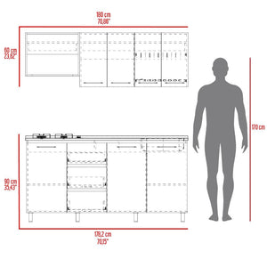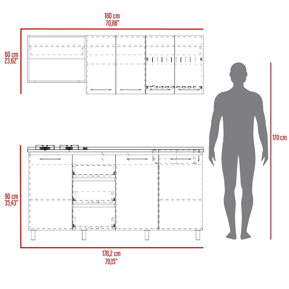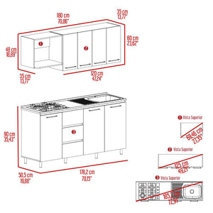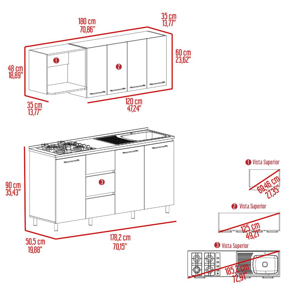 cocina integral 180 elied, blanco duqueza y bardolino, incluye mesón derecho