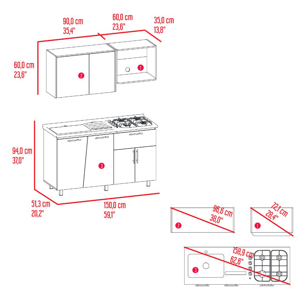 Cocina Integral, con mueble superior que incluye locero y portavasos, espacio para campana extractora, la cocina funciona para izquierda o derecha. Incluye Mesón izquierdo