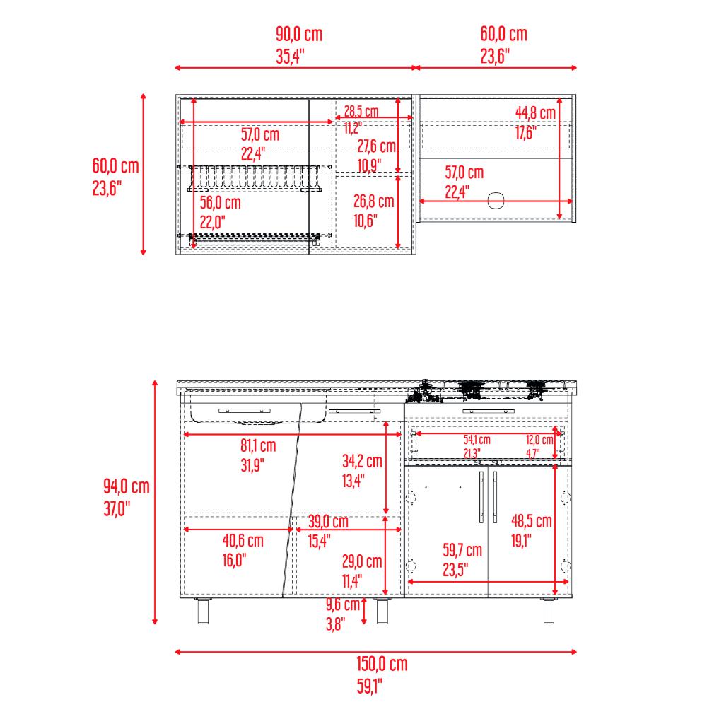 Elaborado en Madera aglomerada MDP, recubierta con láminas melamínicas de excelente calidad, en color Fresno Europeo y Taupe