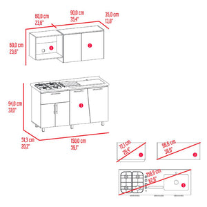 Cocina Integral, con mueble superior que incluye locero y portavasos, espacio para campana extractora, la cocina funciona para izquierda o derecha.