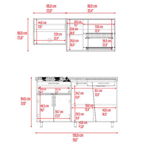 Elaborado en Madera aglomerada MDP, recubierta con láminas melamínicas de excelente calidad, en color Fresno Europeo y Taupe
