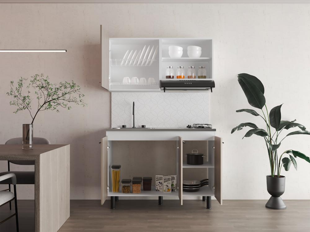 cocina integral flas, bardolino y blanco duqueza, incluye mesón socoda winner izquierdo