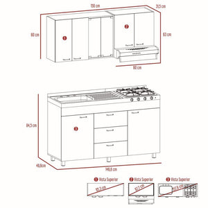 cocina integral laurel, castaño y blanco, no incluye mesón