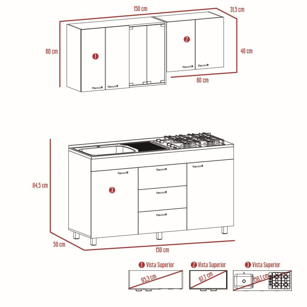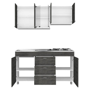cocina integral laurel, gris y blanco, incluye mesón izquierdo