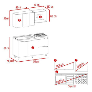 cocina integral mound, café claro y wengue, incluye mesón izquierdo en acero cf