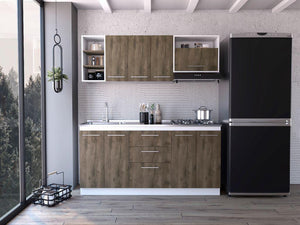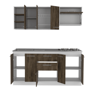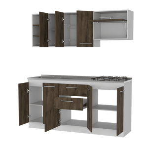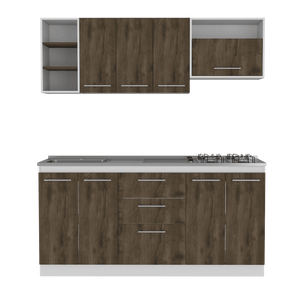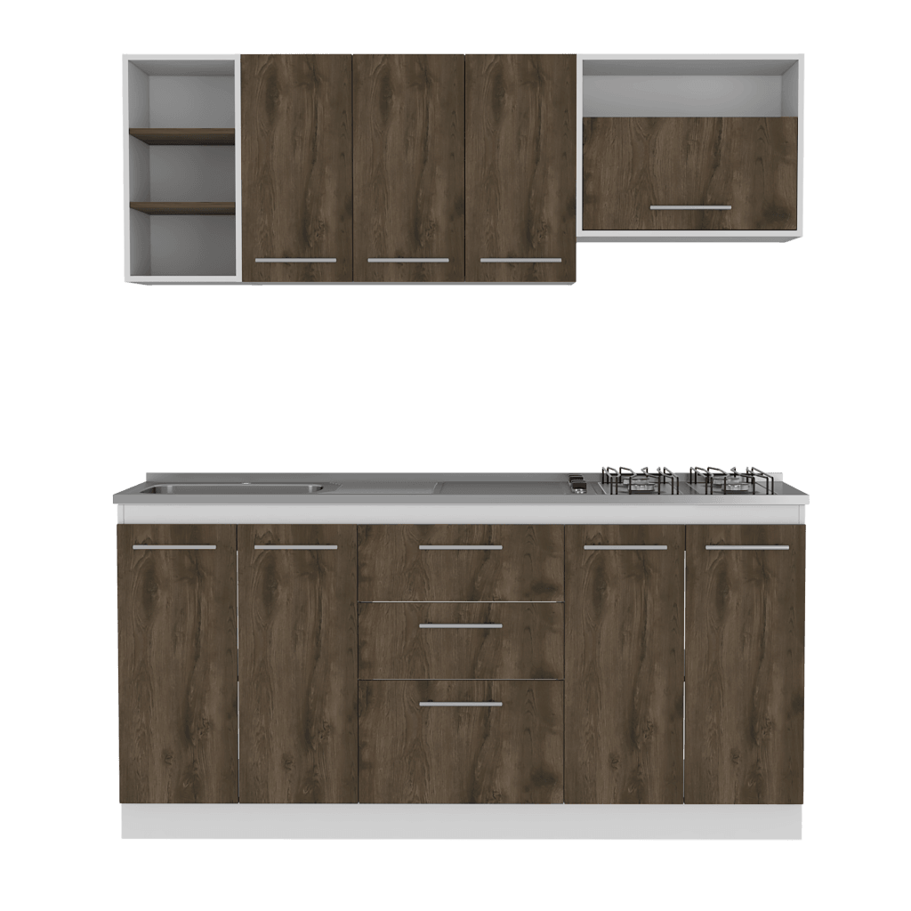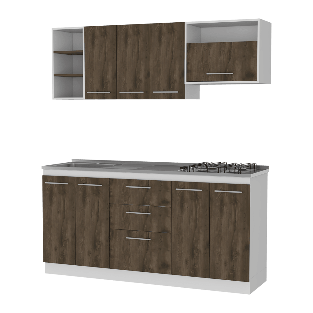 cocina integral osaka, nogal y blanco, incluye mesón izquierdo en acero inoxidable