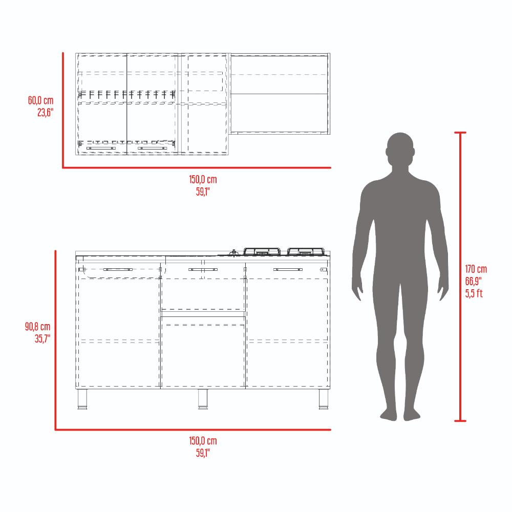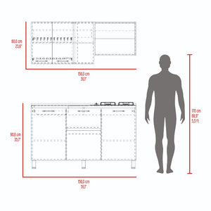 Elaborado en Madera aglomerada MDP, recubierta con láminas melamínicas de excelente calidad, en color Bardolino y Blanco