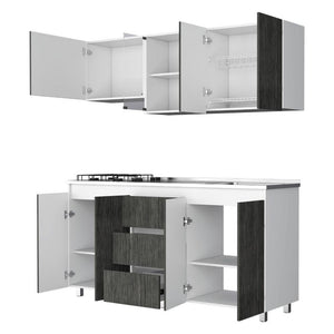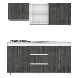 Elaborado en Madera aglomerada MDP, recubierta con láminas melamínicas de excelente calidad, en color Gris y Blanco.
