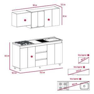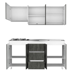 cocina integral polux, gris y blanco, incluye mesón derecho hc