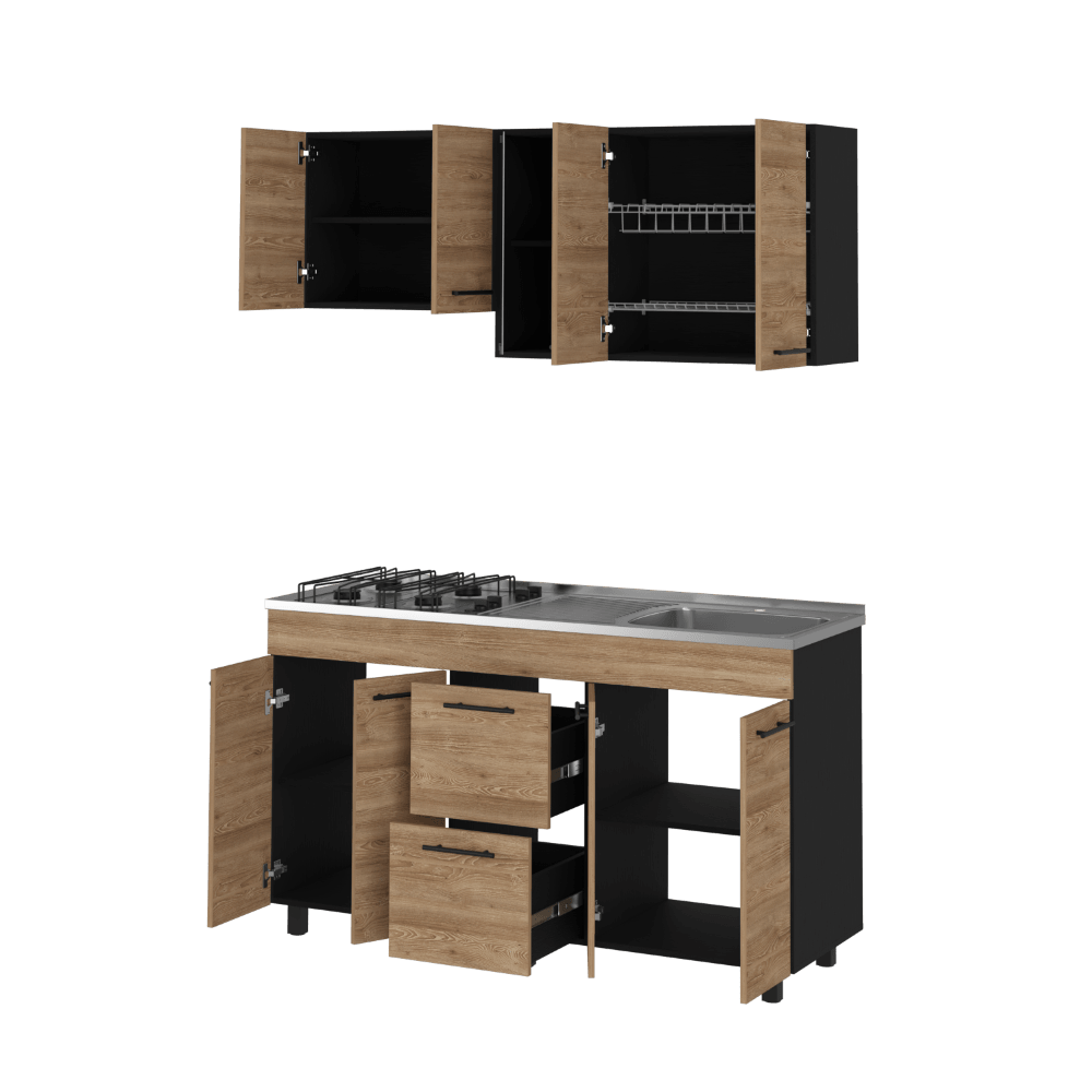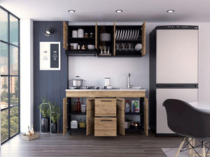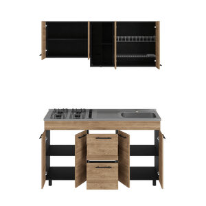 cocina integral prada, wengue y miel, incluye mesón derecho