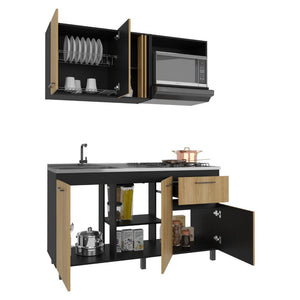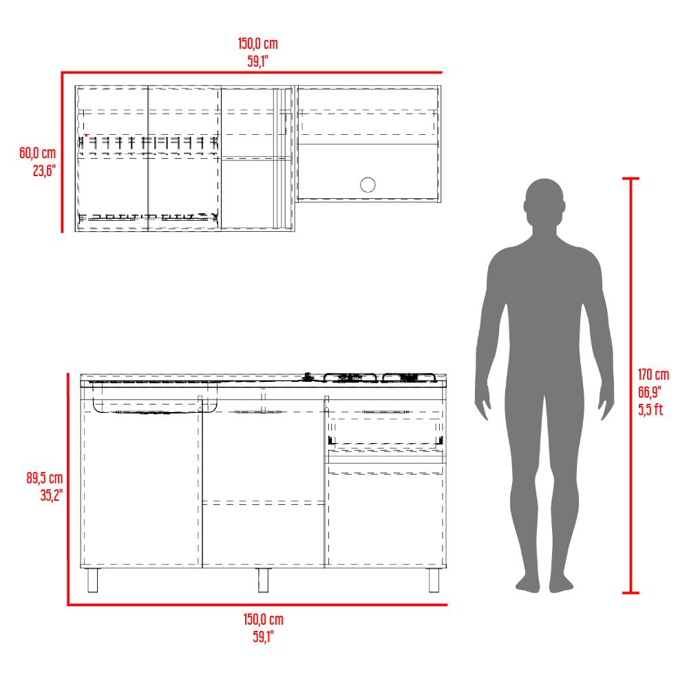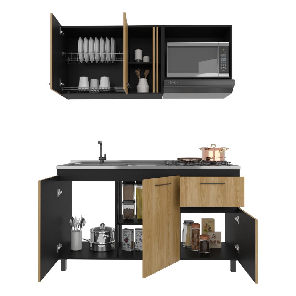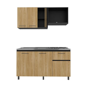 Cocina Integral, incluye mesón Derecho, 5 puertas batientes y 1 cajón, patas metálicas, variedad de entrepaños.