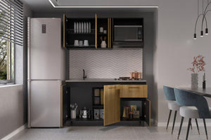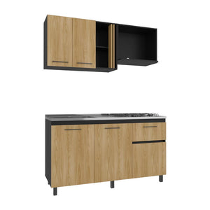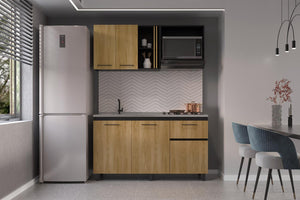 cocina integral preston 150, wengue y fresno europeo, incluye mesón derecho