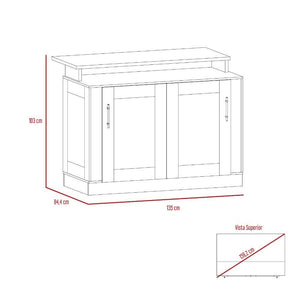 - Barra de Cocina, con dos puertas, espacios amplios para guardar alimentos e implementos de cocina y amplia superficie de trabajo.