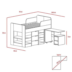 diseño moderno y funcional, posee espacios para objetos decorativos., 3 amplios cajones multiusos, escritorio deslizable con ruedas, 2 cajones deslizables con rieles y espacios para guardar objetos. NO INCLUYE COLCHÓN.
