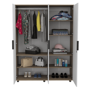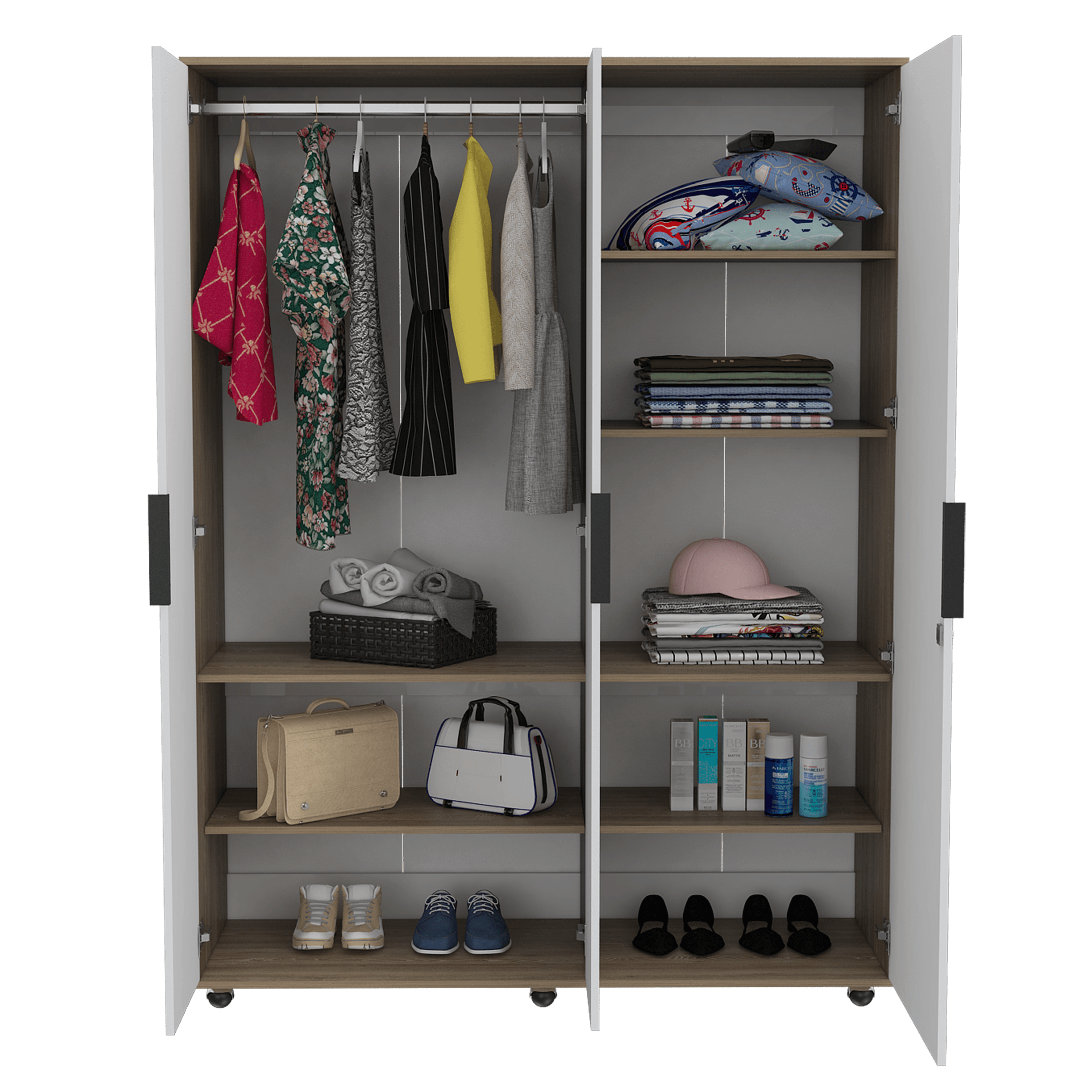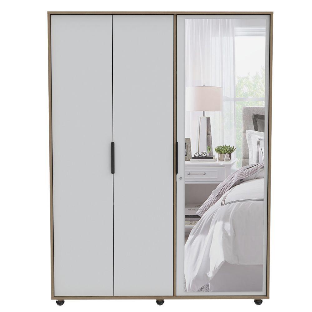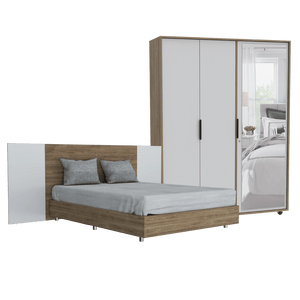 Combo para habitación, incluye Cama Doble con cabecera.NO INCLUYE COLCHÓN y, Closet con diseño moderno, 3 puertas con manija de aluminio y un tubo para colgar ropa y 6 entrepaños para ubicar objetos.