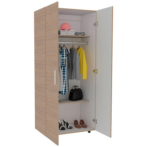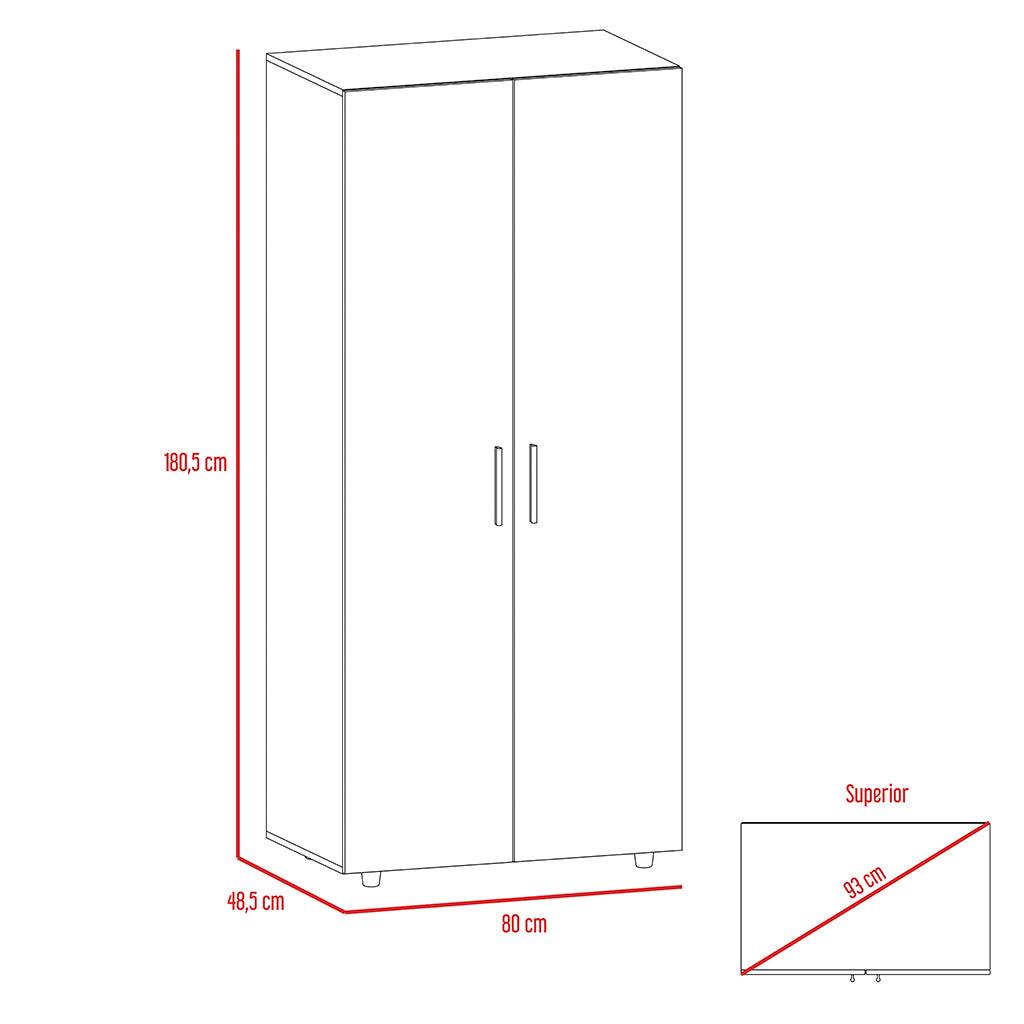 Closet, con 1 tubo cromado, 2 puertas abatibles, y varios entrepaños.