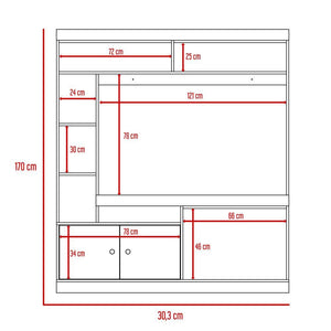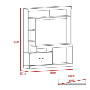 Estante, con 2 puertas batientes y múltiples repisas para colocar todo tipo de objetos y con capacidad para televisor de 52 pulgadas.